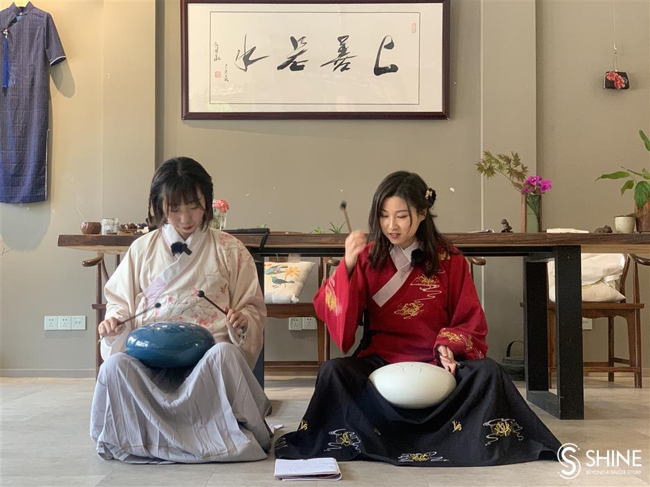 “the drumsticks with rubber heads look like the bamboo beaters of the chinese hammered string instrument yangqin, but you need to hold them like you are striking snare drums,” said liu lin, a teacher at tangzhen cultural creative center.